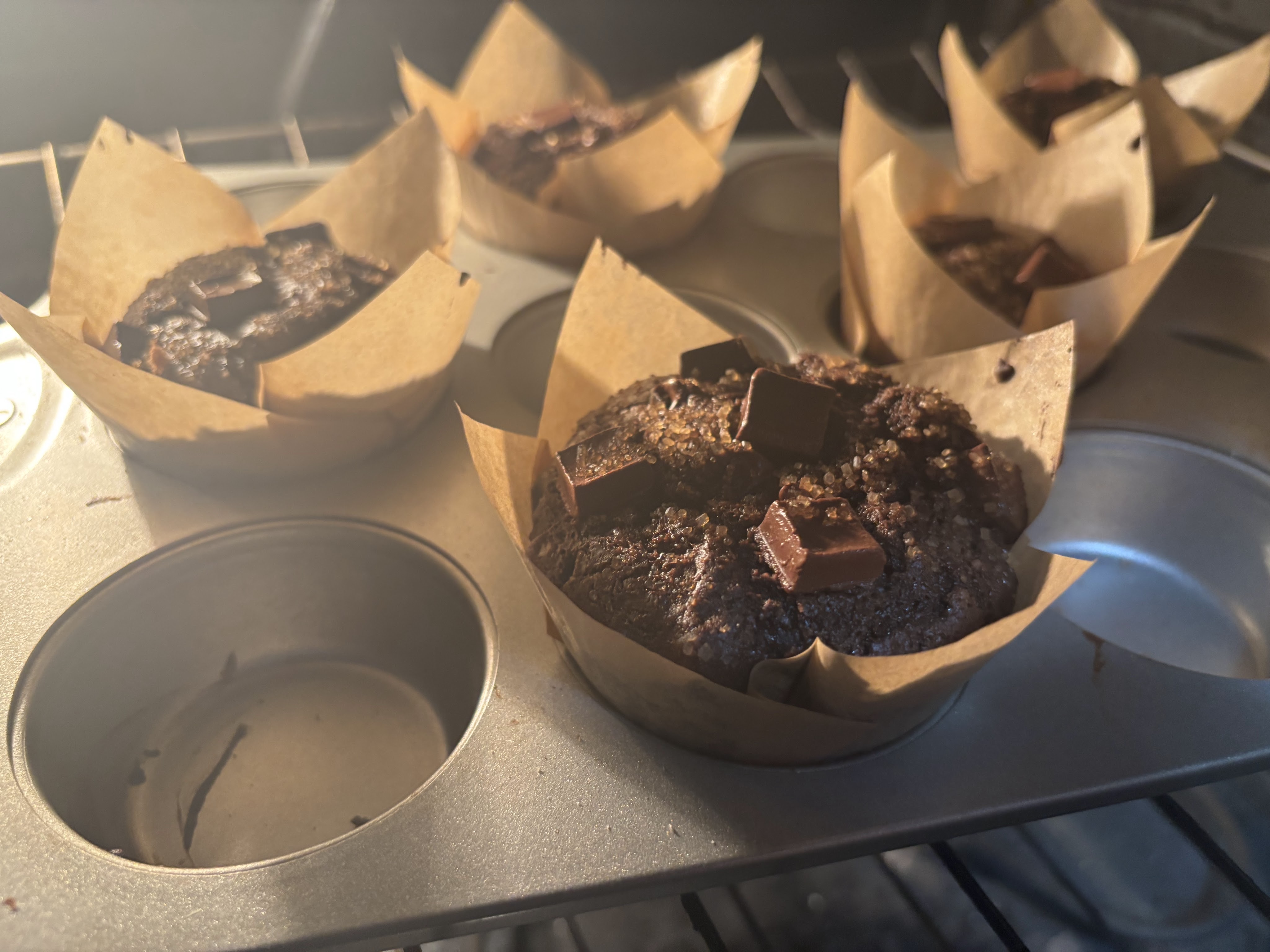 - Place 6 liners in muffin tin, alternating cups to leave a cup between each muffin if possible.